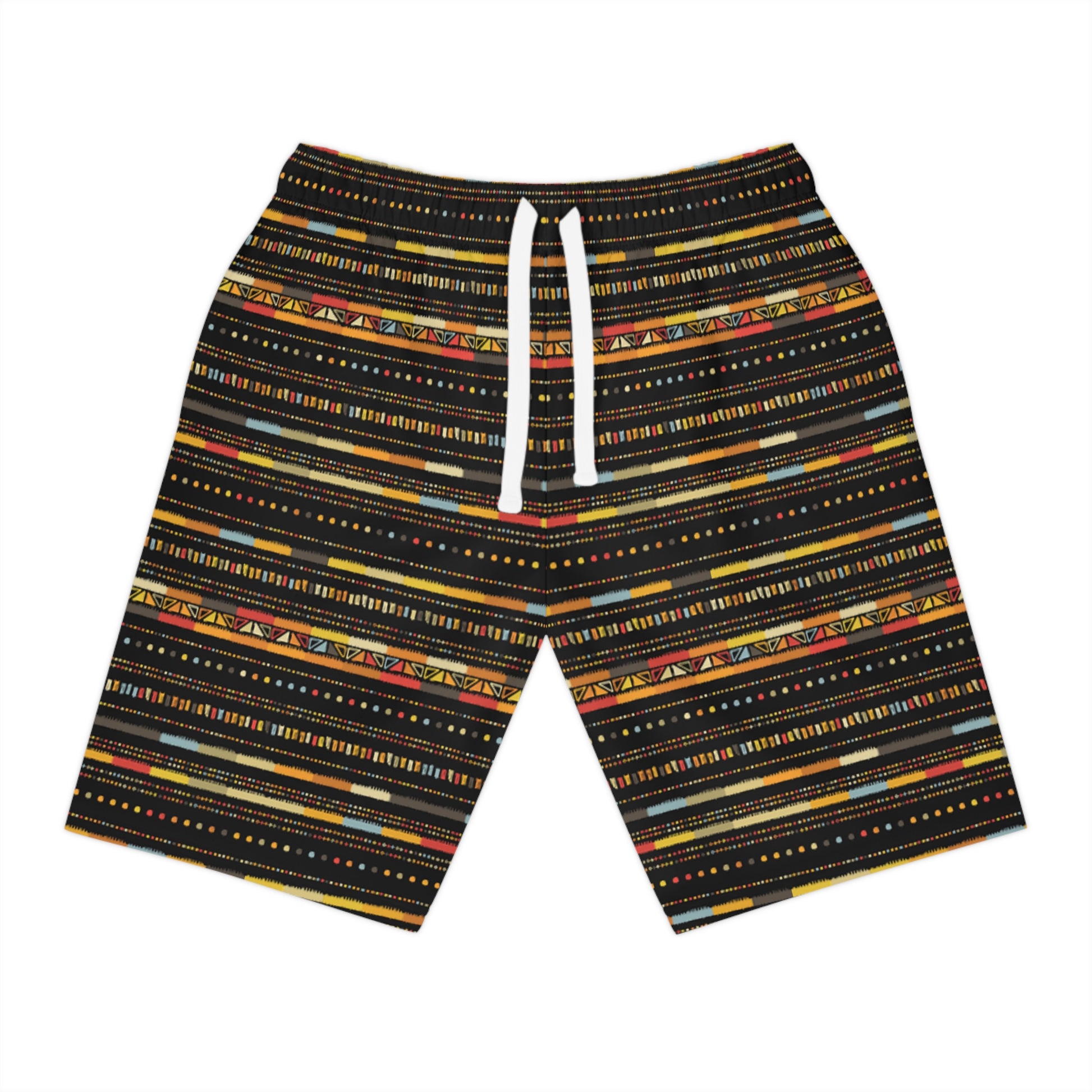 Trendy Athletic Long Shorts | Colorful Geometric Print, Fitness Gear, Summer Style, Beach Wear, Workout Shorts